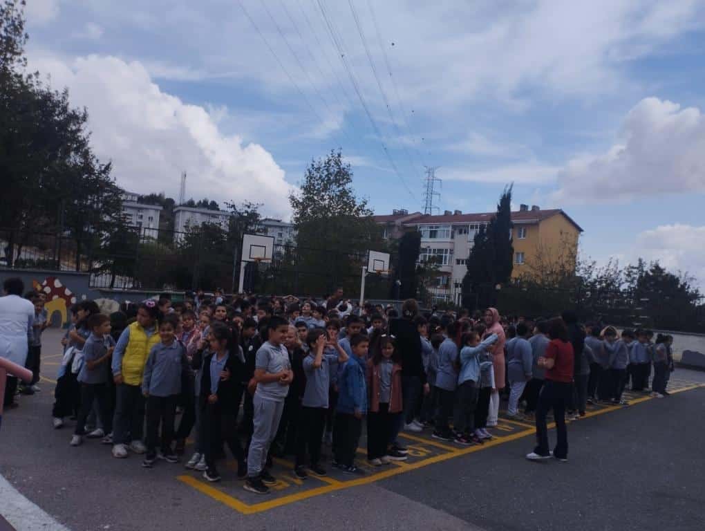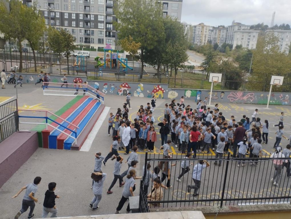 Okulumuzda tüm öğrencilerimiz ve öğretmenlerimizin katılımıyla "Deprem/Bina Tahliye Tatbikatı" yapıldı.Okulumuzda çalan acil durum zil sesi ile “Çök, Kapan, Tutun” hareketi yapılarak zil sesinin bitmesi beklendi. Zil sesinin bitmesinin ardından yapılan duyuruyla öğrencilerimiz, öğretmenlerinin yönlendirmeleriyle tek sıra halinde bulundukları sınıf ve katlardan tahliye planını izleyerek, binayı terk edip toplanma alanlarına ulaştı.