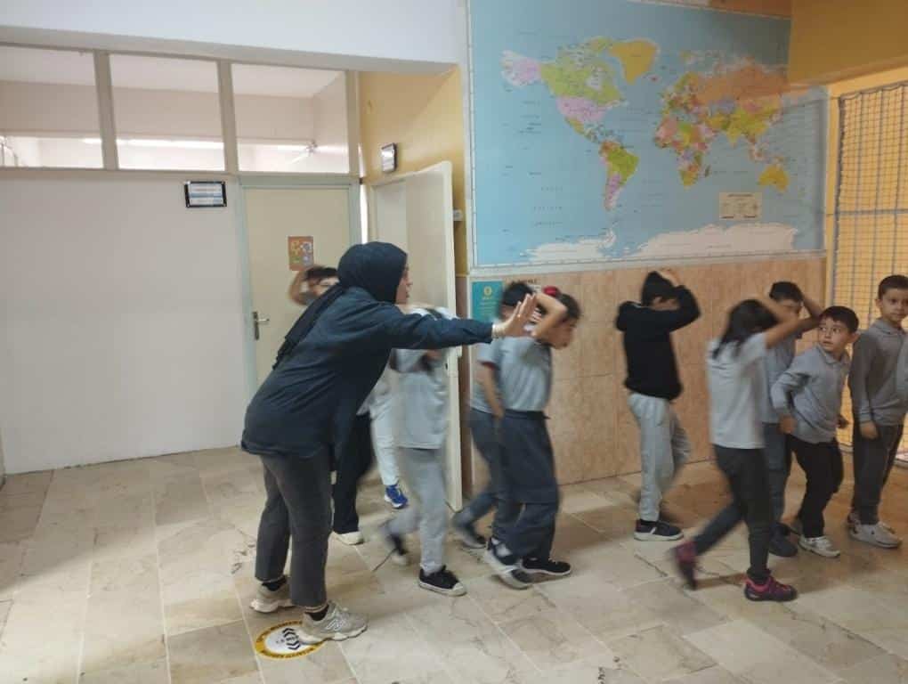 Bina tahliye tatbikatında, öğrencilerimiz 1.30 dakikada, öğretmenleri ile birlikte bina tahliyesini tamamladı.